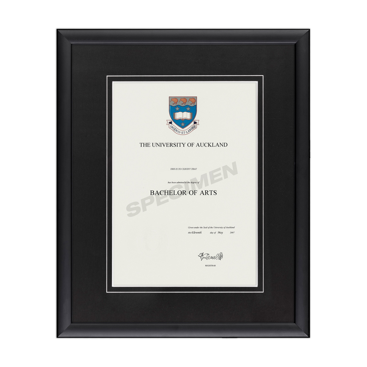 - Ready Made – We supply the complete frame and prepared materials for you to insert the document or degree yourself. Some finishing work required.