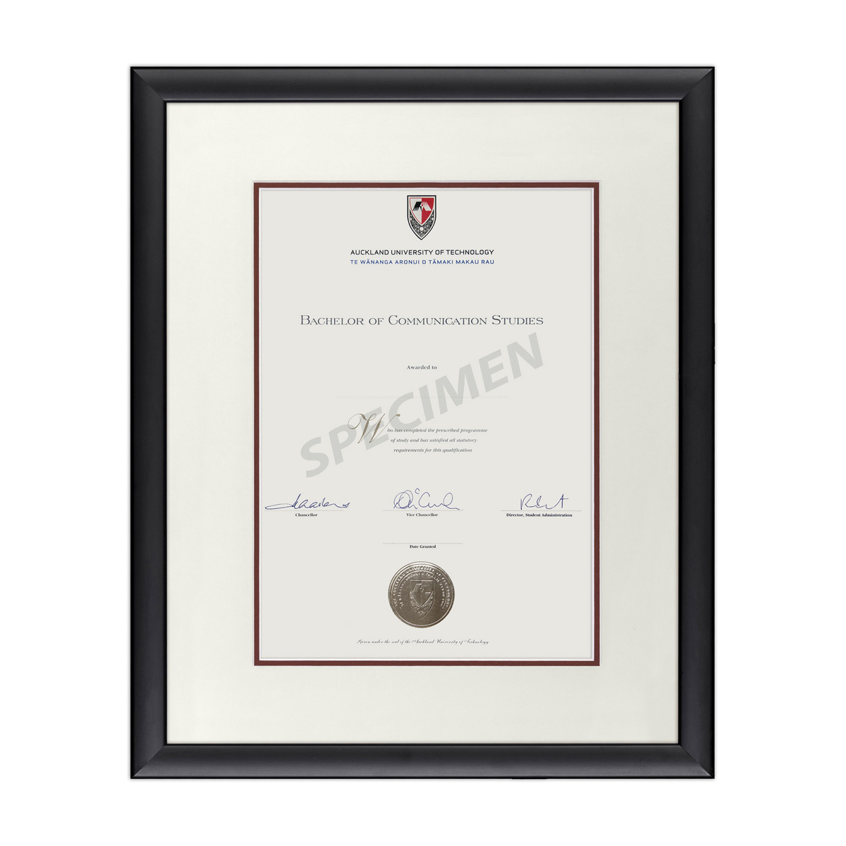 • Ready made – We supply the complete frame and prepared materials for you to insert the document or degree yourself.