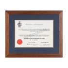 - Ready Made – We supply the complete frame and prepared materials for you to insert the document or degree yourself. Some finishing work required.